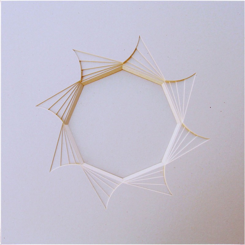 4 Ouvertures successives en éventail pointes vers la gauche + liserés progressifs de 5, 7, 10 et 12 mm (cartonnettes)