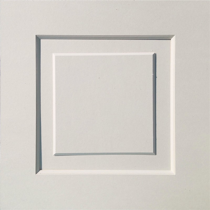 2 cartonnettes, 1 carton à biseau 3,5 mm , 1 pavé inversé, puis ouverture carrée (biseau + cartonnette)
